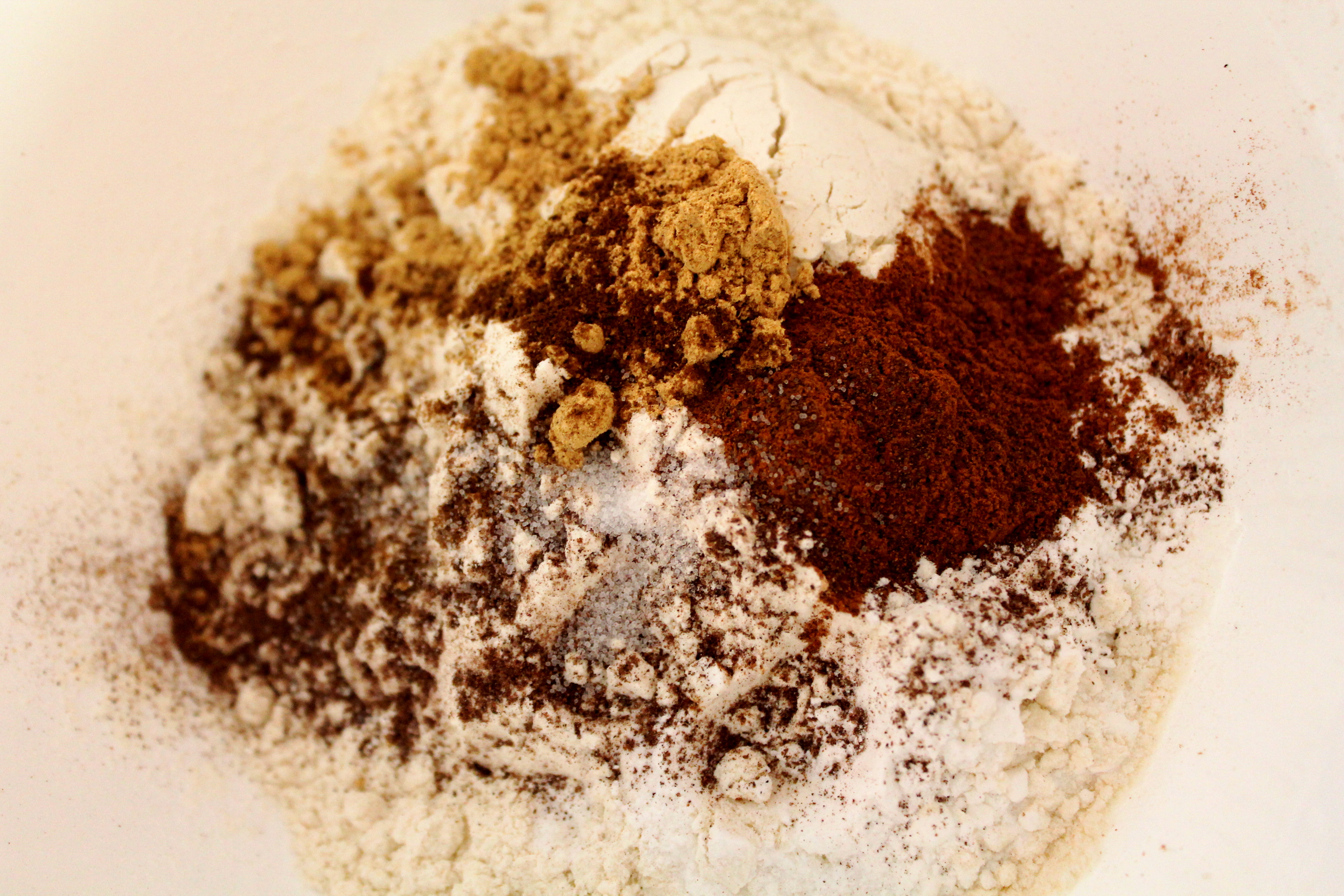 Whisk the flour, baking powder, bicarbonate of soda, cinnamon, ginger, allspice, cloves, salt and ¼ cup brown sugar together. Add the egg, applesauce, honey, and brown butter. Add the milk if batter appears to be too dry.
