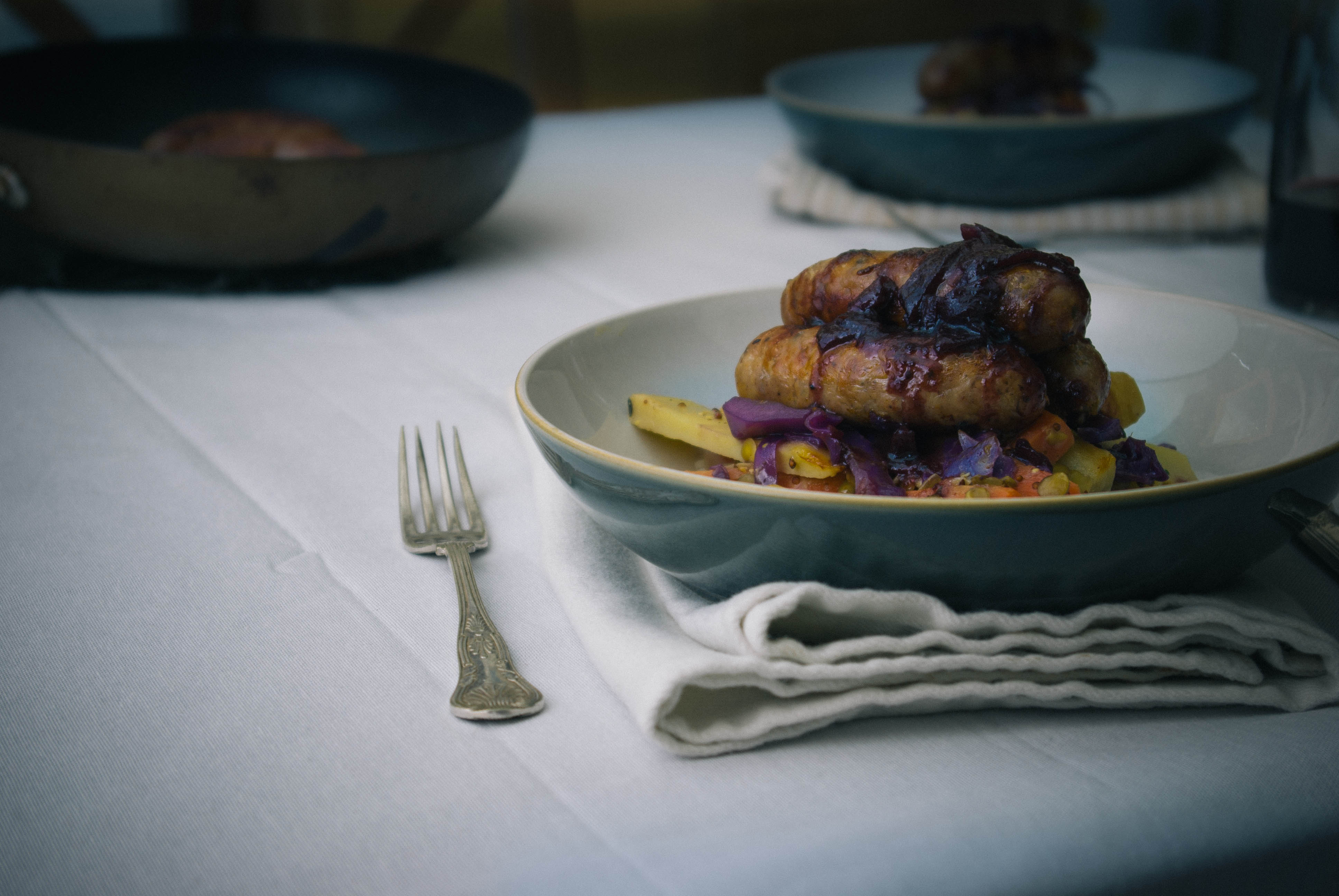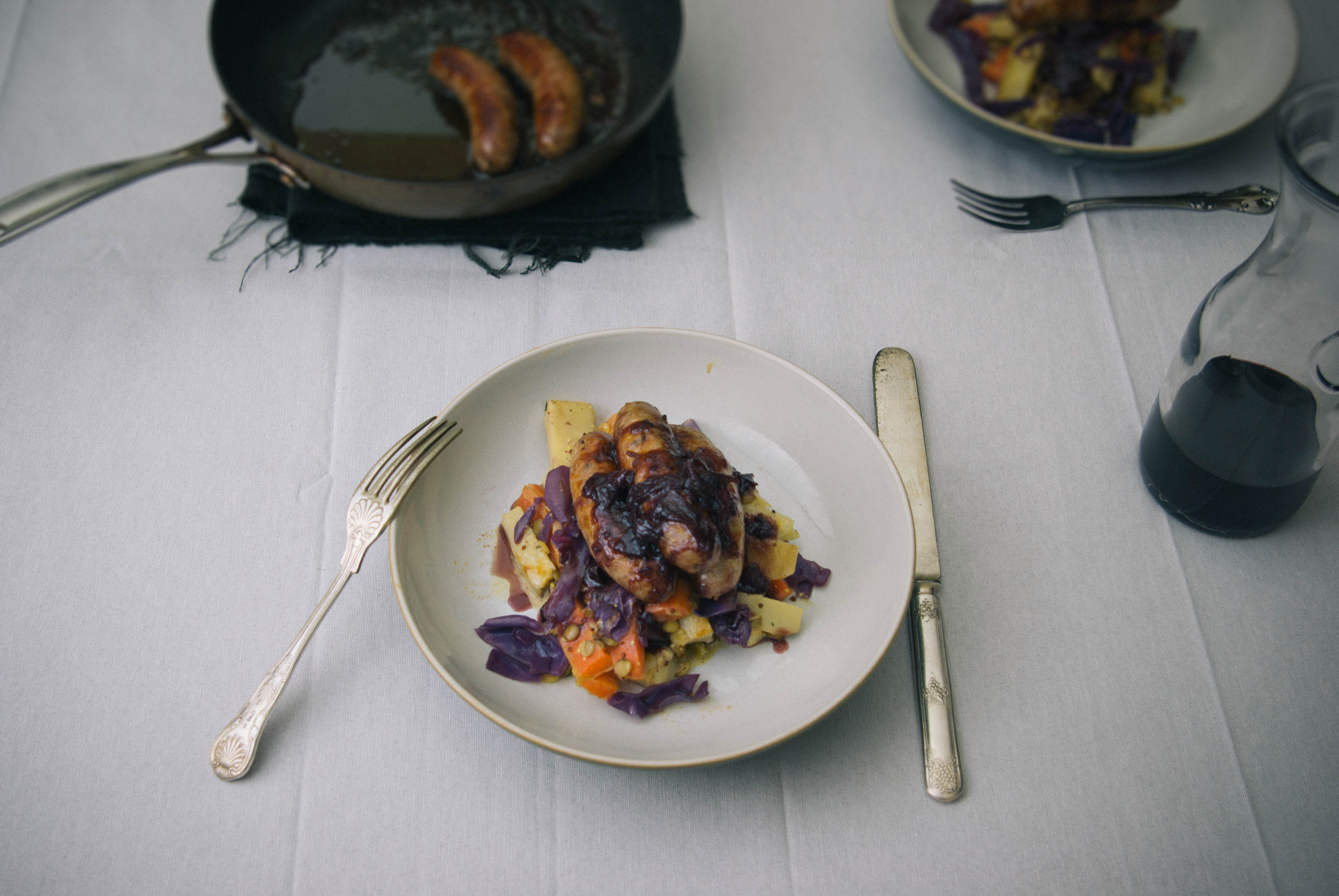 Weekend Meals: Bangers, roots & lentils